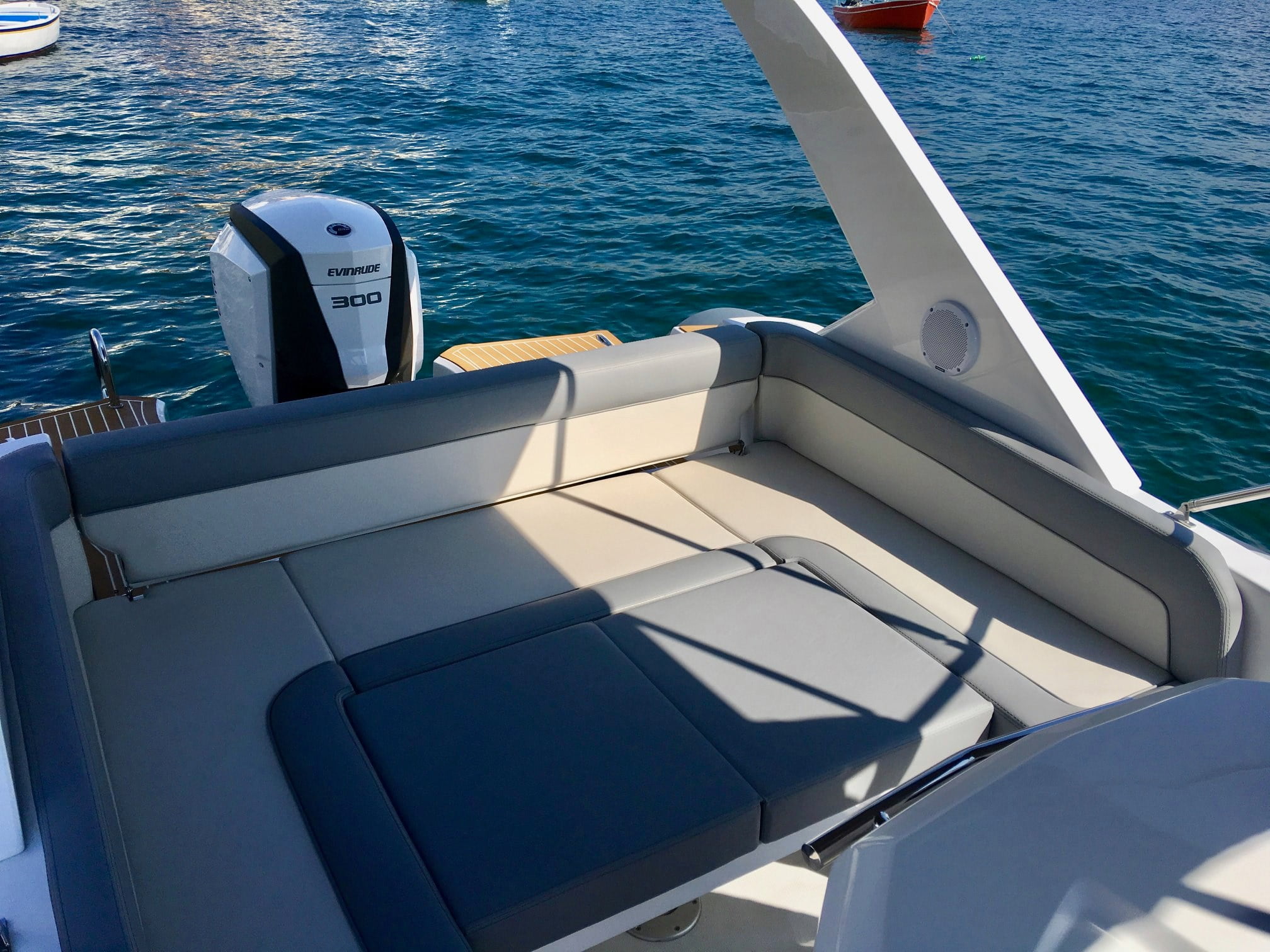 * El Gelcoat de las partes de fibra de vidrio del barco en todos los colores distintos al blanco puede estar sujeto a decoloración.