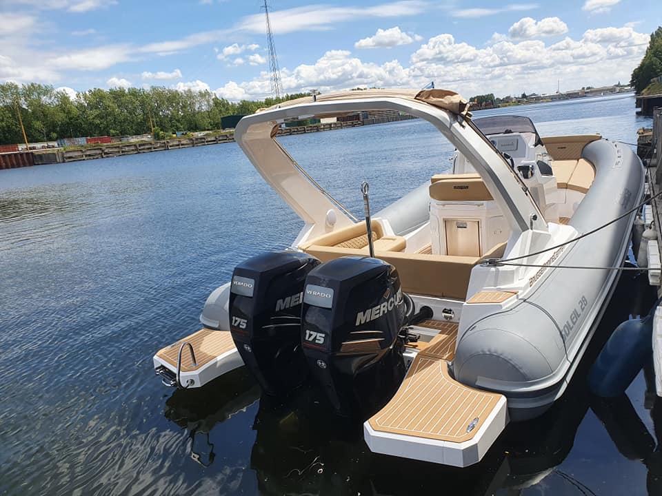 Plataformas de popa VTR y escalera telescópica de acero inoxidable.