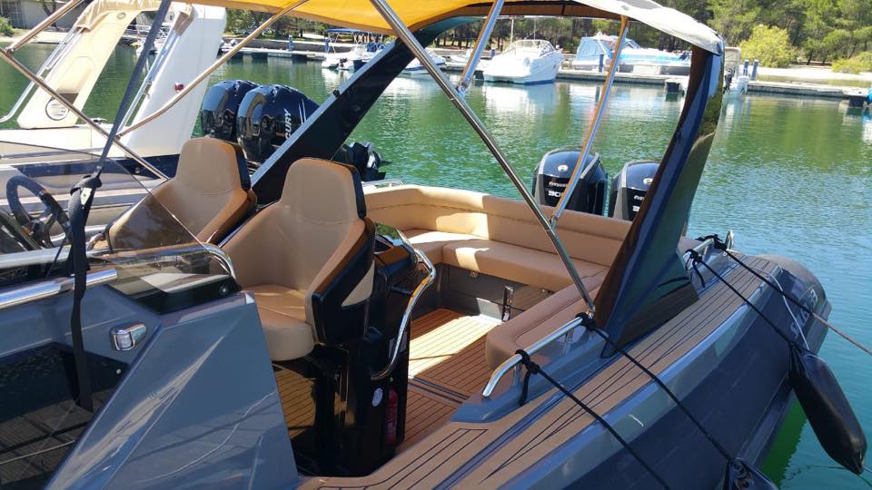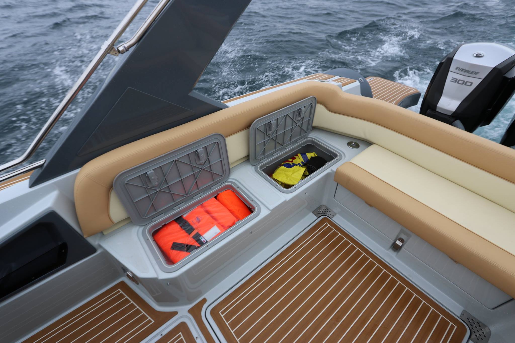 * El Gelcoat de las partes de fibra de vidrio de la embarcación en todos los colores distintos al blanco puede estar sujeto a decoloración.